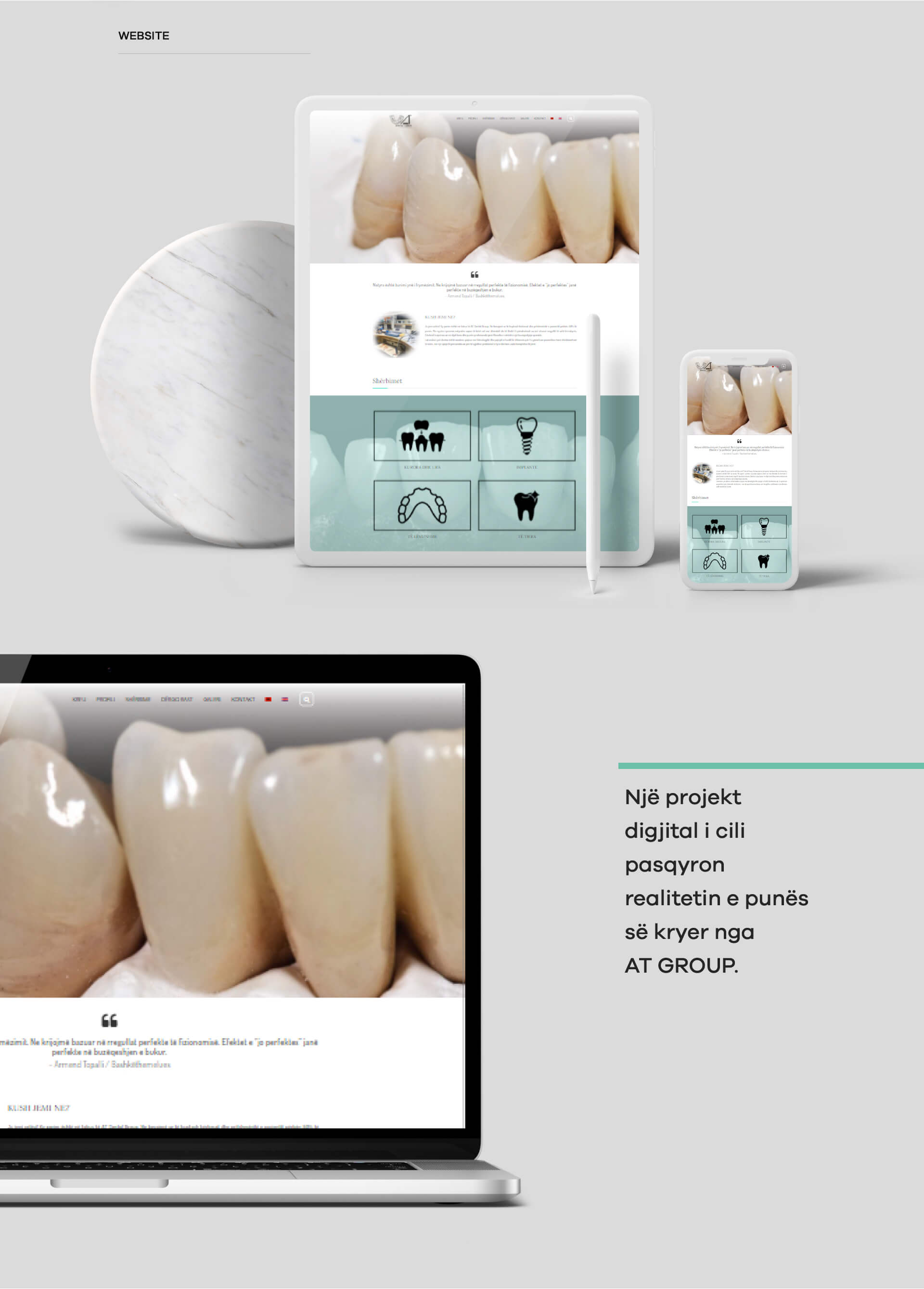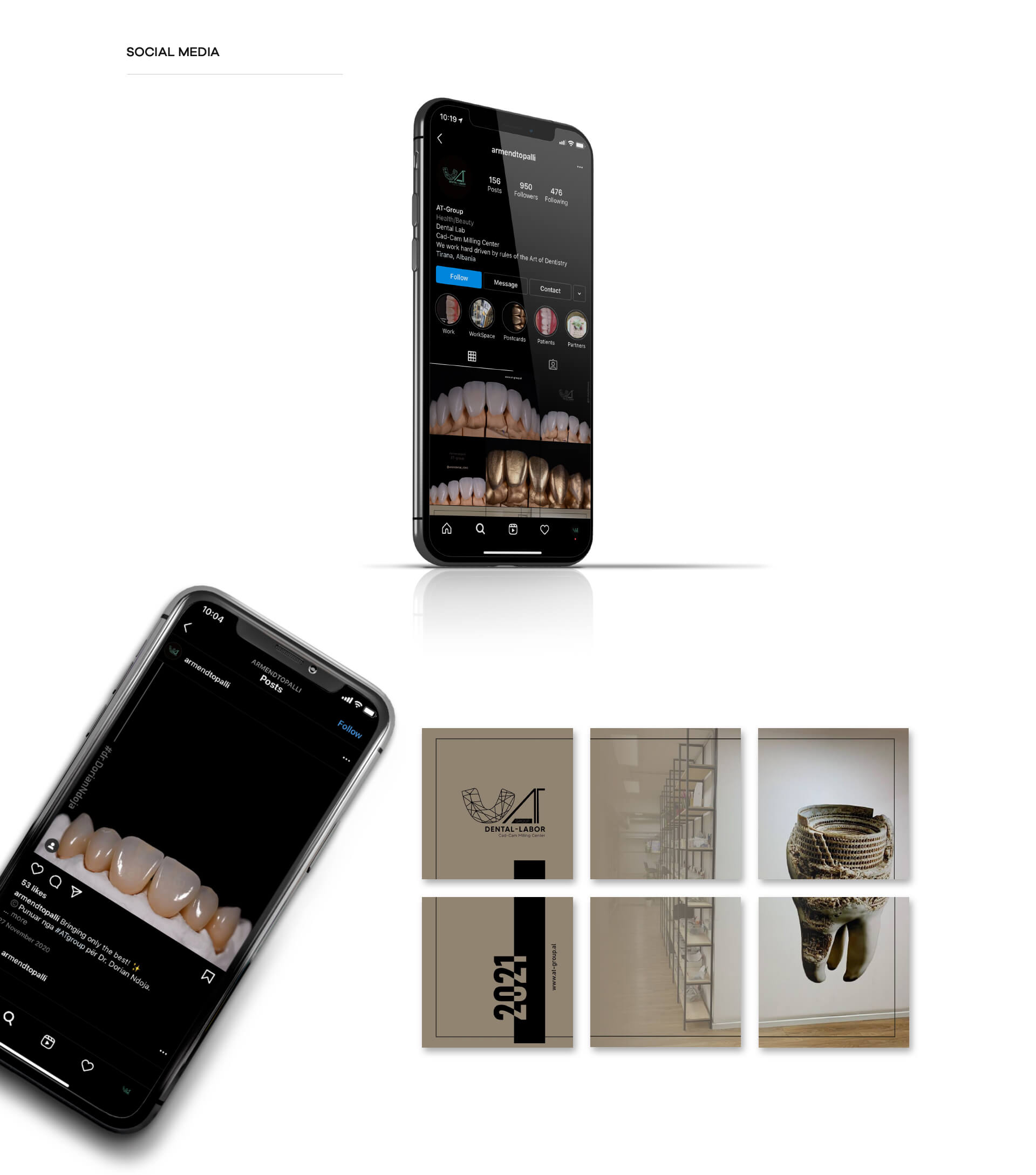 10 vite më parë ideatorët, Armend Topalli dhe Niva Memo sollën një frymë të re në fushën dentare me synimin për të sjellë në tregun shqiptar dhe jo vetëm, standardin dhe cilësinë më të lartë të të bërit art me dhëmbin pa humbur magjinë e natyralitetit. Ne e kuptuam vizionin e tyre dhe e pasqyruam në konceptin dhe ndërtimin total të Web-it. Në këtë linjë vazhdojmë edhe me menaxhimin e mediave sociale; pasurimin e tyre vazhdimisht me foto, video dhe kontent.